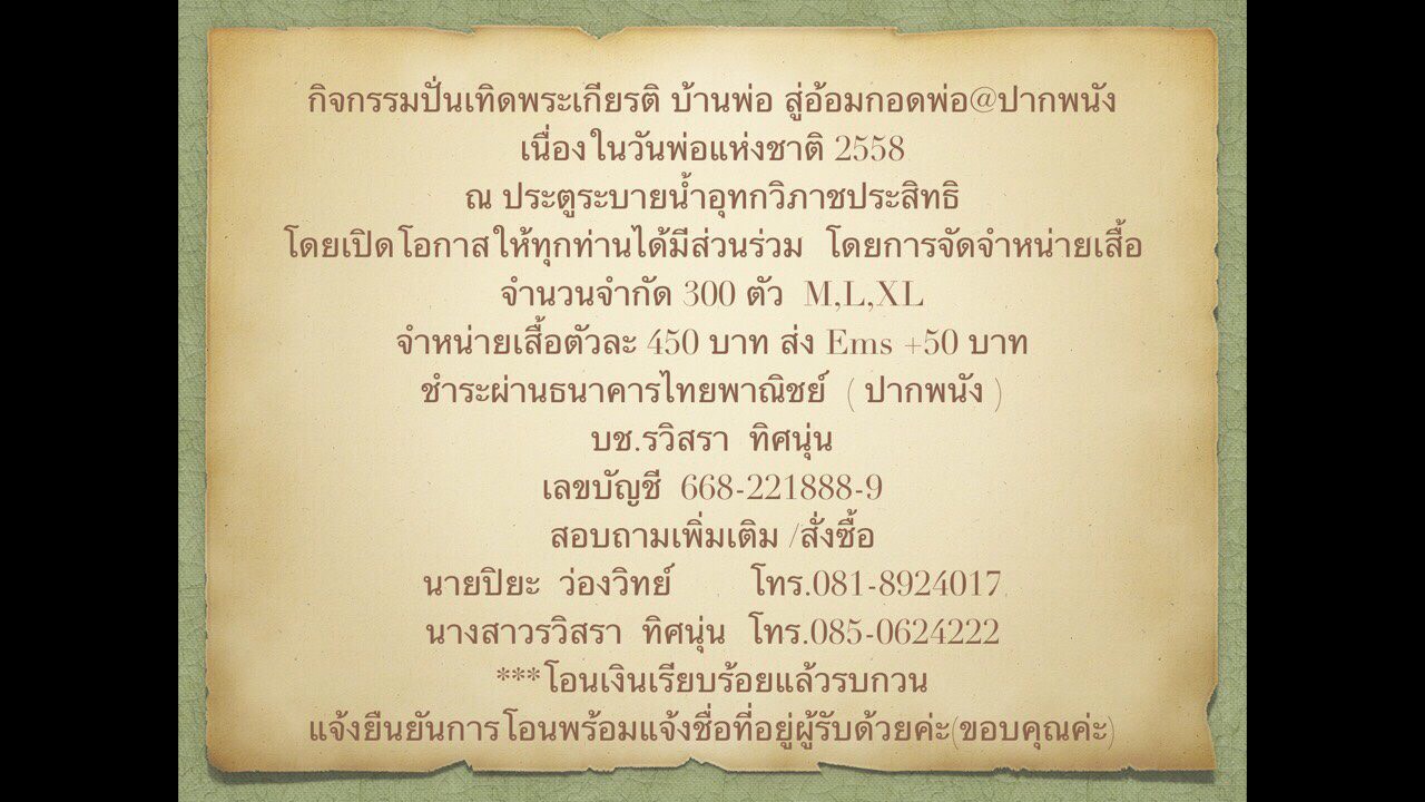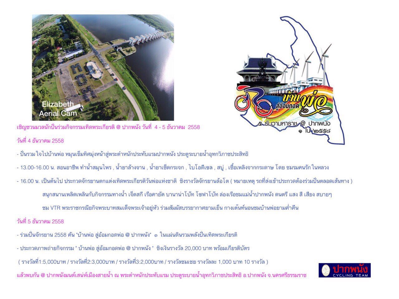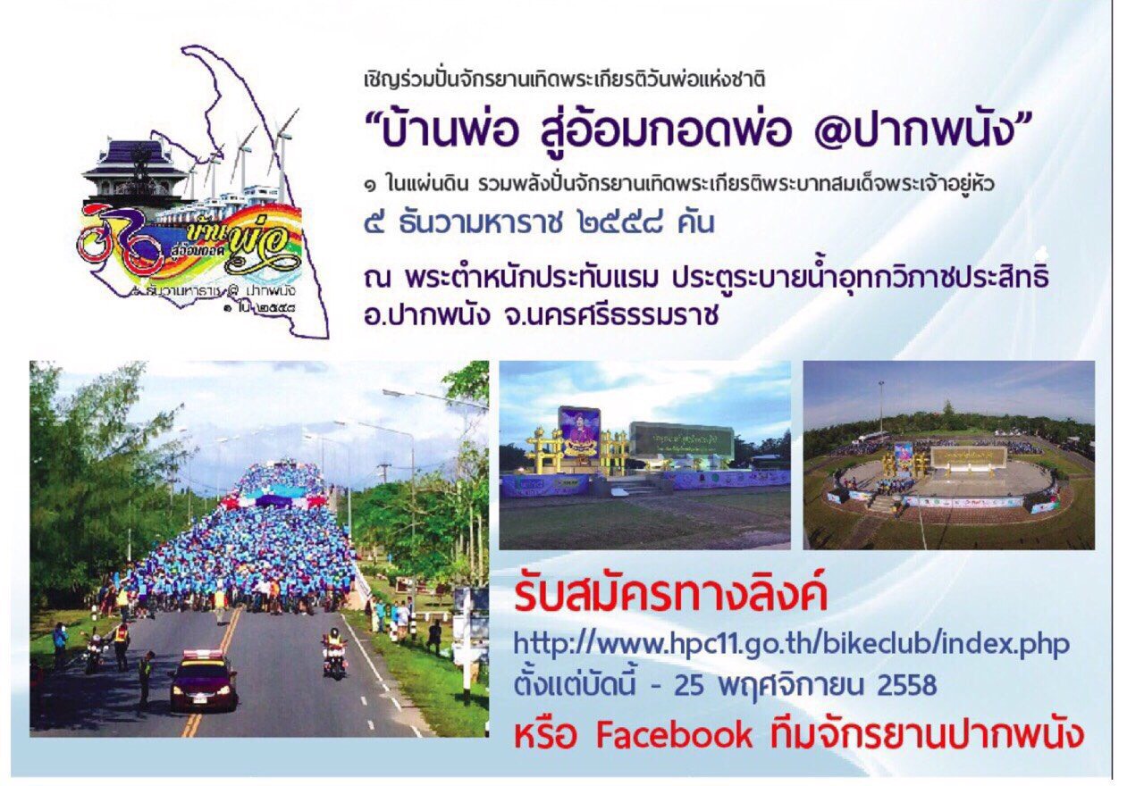 ขอเชิญผู้ที่สนใจร่วมกิจกรรมปั่นเทิดพระเกียรติพ่อหลวง ณ ปากพนัง