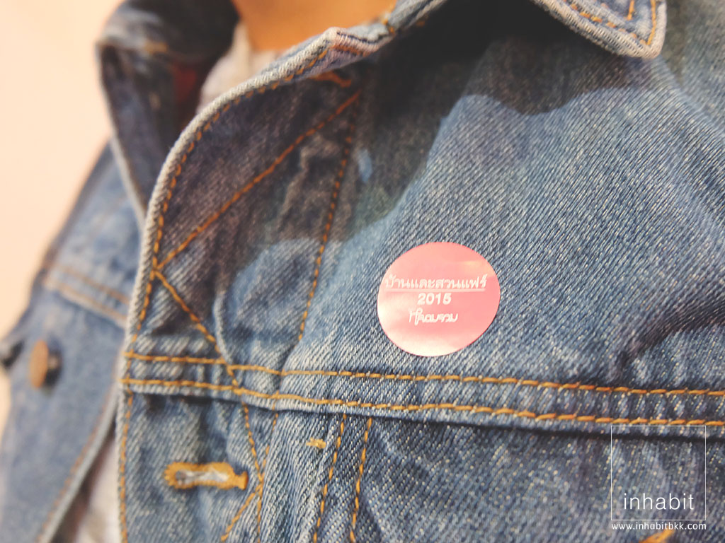 ก่อนเข้างานก็จะมีเจ้าหน้าที่ของบ้านและสวนมาขออนุญาตติดสติกเกอร์ที่เสื้อพอเป็นพิธี น่าจะเป็นการนับคนมาเดินเที่ยวชมงานน่ะครับ