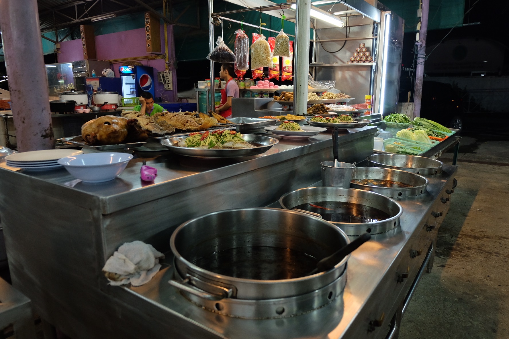 เดินถ่ายรูปบรรยากาศร้านเสร็จก็ได้เวลาหาที่นั่งกันซะที กับข้าวร้านนี้ส่วนใหญ่จะราคาอยู่ที่ 80-90 บาทนะครับ ส่วนถ้าเป็นประเภทปลาทอด/นึ่งราคาจะอยู่ที่ 150-250 บาทครับ (หมูพลิ้วไม่ได้เก็บใบเสร็จไว้เลยจำราคาแยกจานไม่ได้ ต้องขอโทษด้วยนะฮะ)