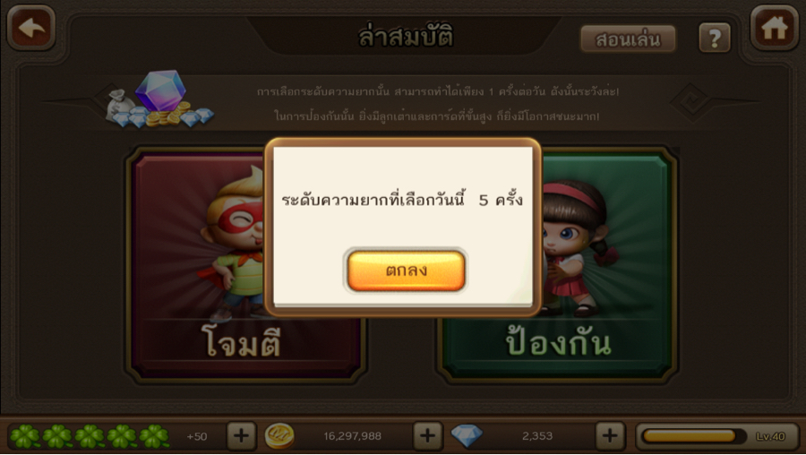 คำถามเกี่ยวกับโหมดล่าสมบัติ