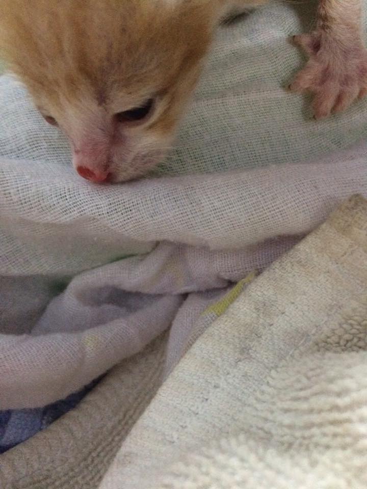 ลูกแมวอาการแย่มากตกจากที่สูง อ่อนเพลียนิ่งทั้งวันและไม่ยอมกินนม