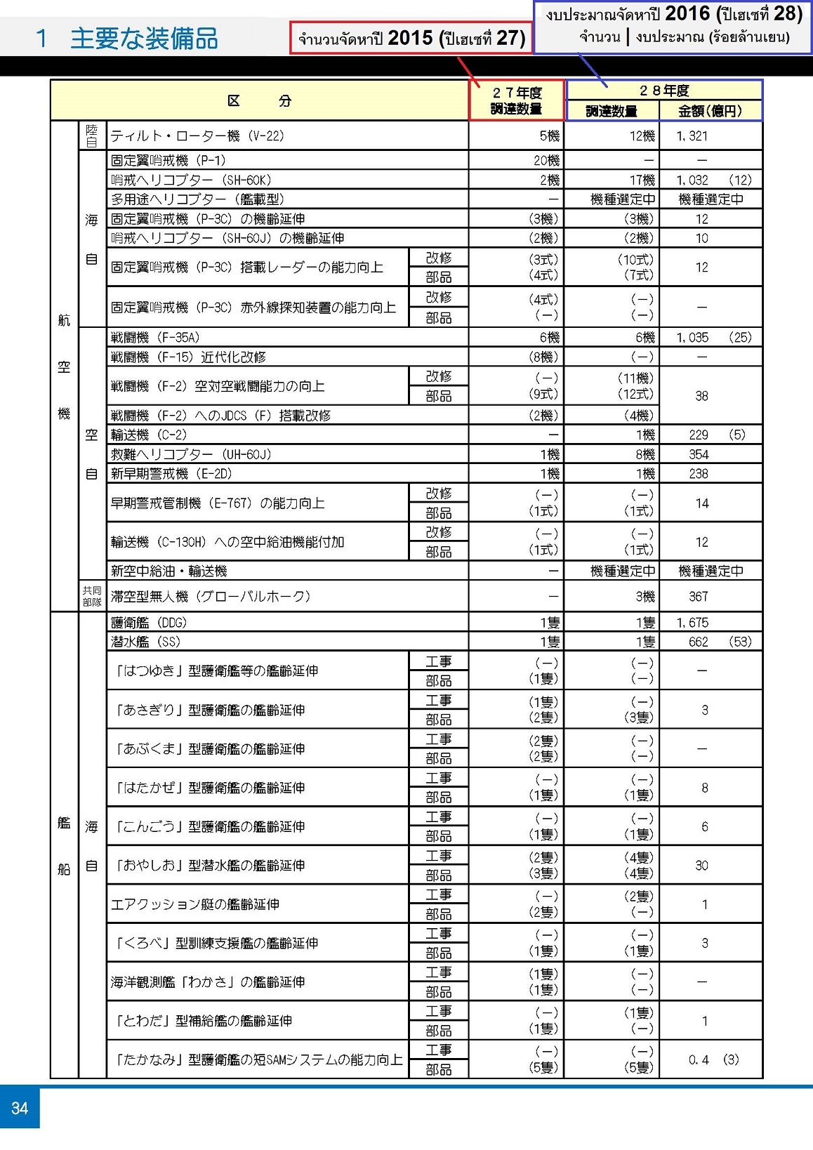 ตารางสรุป จาก http://www.mod.go.jp/j/yosan/2016/gaisan.pdf