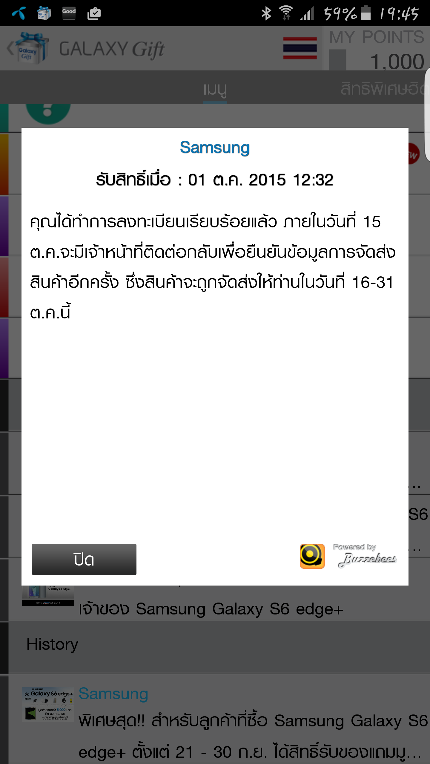 ผมได้ซื้อเครื่องและลงทะเบียนรับสิทธิ์ของแถม ตั้งแต่วันที่ 1-10-15 มีเจ้าหน้าที่จาก Samsung โทรมาเพื่อที่จะยืนยันที่อยู่แล้วครับ แต่จนตอนนี้ก็ยังไม่ได้รับของเลยครับ ซึ่งในข้อมูลบอกว่าจะได้รับไม่เกินวันที่ 31-10-15