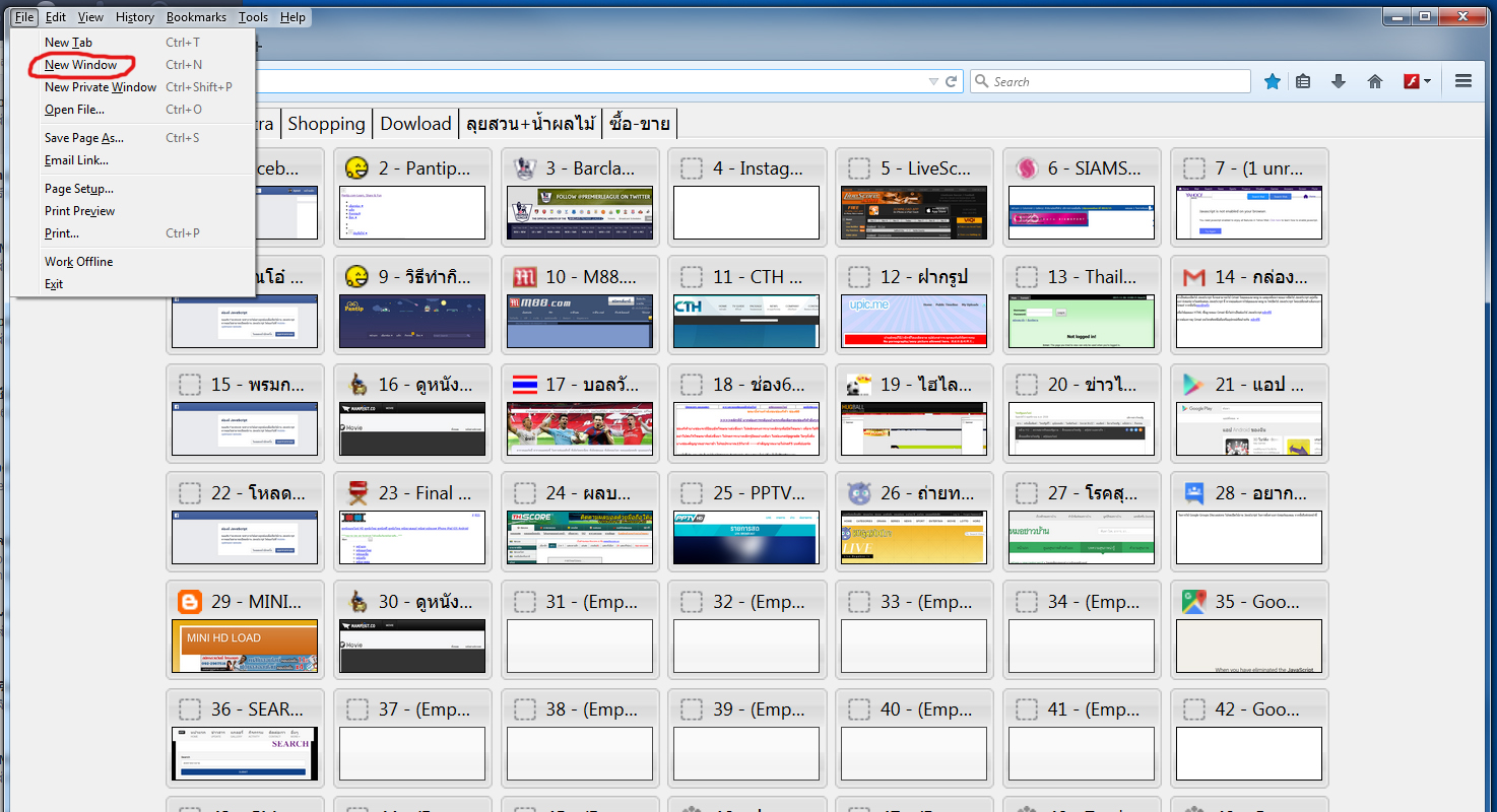 Fire Fox เมนู New Window หายบ่อย มีแต่ New Private Window ตามรูป