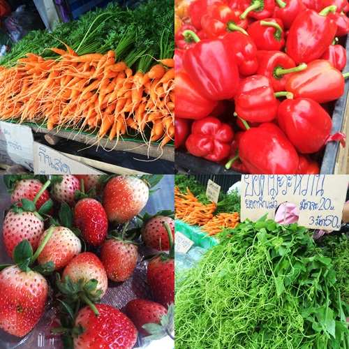 แต่ก็ยังเจอสีสันของ อาหารสด พืชผักของชาวบ้าน แครอท สีสดใสเลยทีเดียว