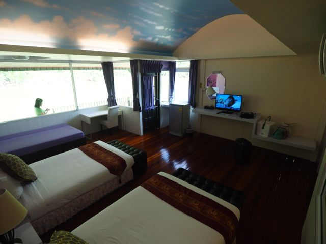 แพหนึ่งเรือนมี 2 ห้องติดกันนะคะ เราก็จองทั้ง 2 ห้องเลย อ้อ...เราจองมาในราคาแพคเกจต่อหัว เป็นค่าที่พัก อาหารเย็น อาหารมื้อดึก อาหารเช้า และกิจกรรมค่ะ แว๊บแรกเมื่อเปิดห้อง