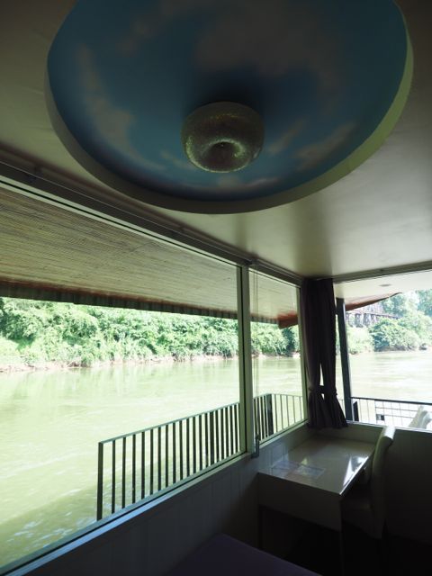ไป check in ที่บ้านริมแคว แพริมน้ำ กันค่ะ เราทราบมาว่าเราสามารถโทรให้รีสอร์ทเอาเรือมารับเราที่ถ้ำกระแซข้ามไปได้เลย แต่เห็นทางลงแล้วชันเกินไปสำหรับคุณพ่อเรา เราก็เลยขับรถอ้อมกันไปค่ะ บ้านริมแควแพริมน้ำเป็นรีสอร์ทที่ใหญ่มากเลยค่ะ มีพื้นที่เยอะและอยู่ในจุดที่ดีมากๆ เลย เราเลือกพักแพริมน้ำแบบปรับอากาศชื่อ แพชงโค เราคิดว่าน่าจะเป็นแพที่ดีที่สุดของรีสอร์ท และยังใหม่มาก อยู่ในจุดที่ดีมากเลย ไปชมกัน