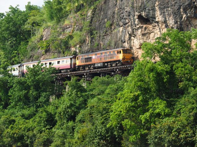 ออกมาที่ระเบียง highlight ของห้องนี้ วิวสะพานรถไฟริมหน้าผากันเต็มๆ