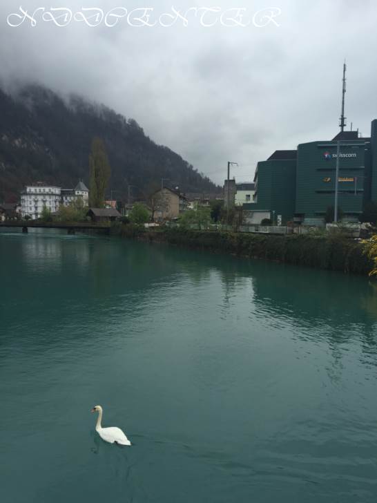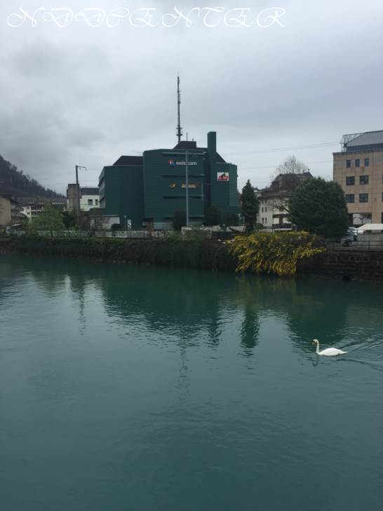 คลองเล็กๆหน้าสถานี Interlaken West ที่ไหลงลงทะเลสาบ