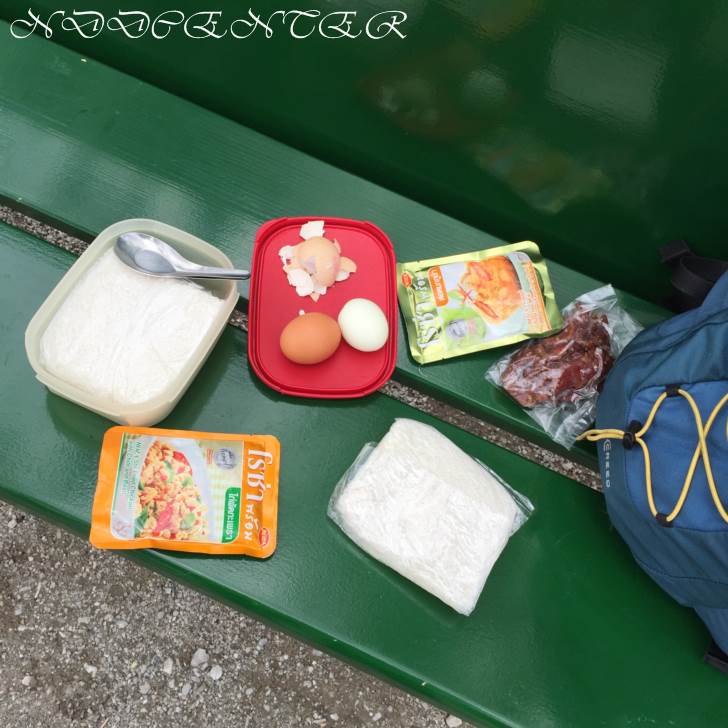 พวกเราแวะกินข้าวกันตรงนี้ครับ มีน้ำพริก ไข่ต้ม และ โรซ่าชนิดซองที่พกมาจากเมืองไทยครับ