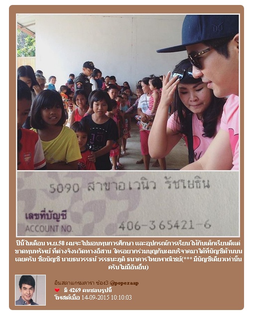 ร่วมทำบุญกับโป๊ป ประจำปี 2558 นี้ น่าจะไปทำบุญให้ทุนการศึกษาเด็กกันแถวๆจ.ยโสธร ช่วงเดือนธันวาคมค่ะ