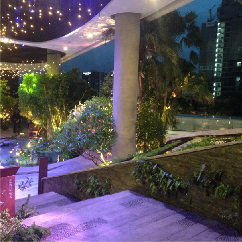 หลังจากนั้นก็ไปดูหนัง พอดูหนังจบก็เริ่มเย็นๆ ทางห้างก็เริ่มเปิดไฟประดับสวยงาม และเรากับเพื่อนก็เดินขึ้นไปชั้นบนตรงสวนลอย