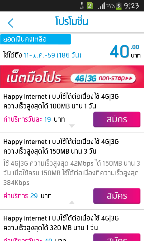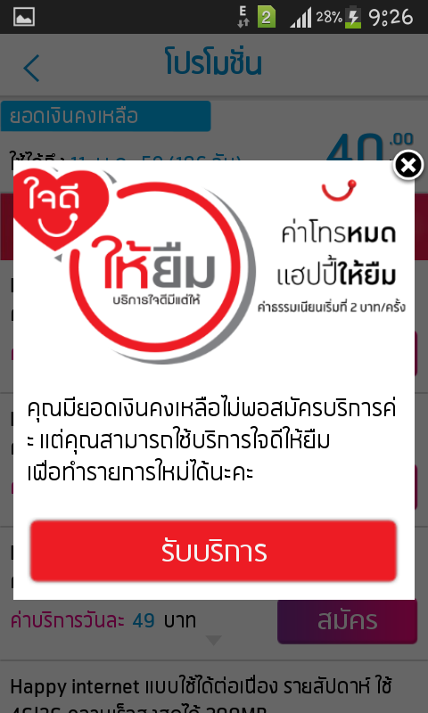 ดีแทคคะทำไมมีเงิน 40 บาทถึงซื้อเนตเสริม 29 บาทไม่ได้
