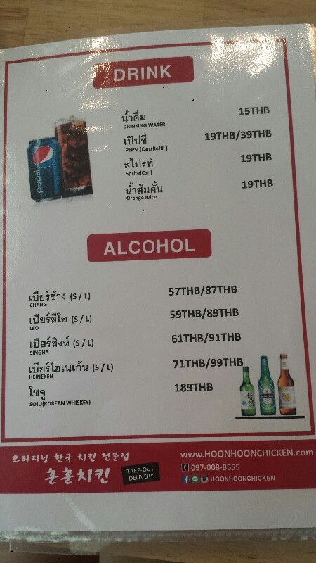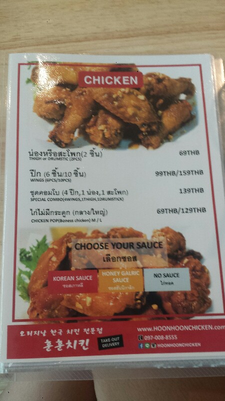 เมนูอาหารของ HOON HOON CHICKEN ค่ะ