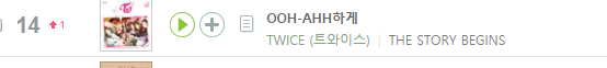 ตอนนี้เพลง OOH-AHH하게 อยู่ที่ #14 ชาร์ตเมล่อนค่ะ ส่วนชาร์ตอื่นๆก็อยู่ในลำดับ 10 กว่าเกือบทุกชาร์ต