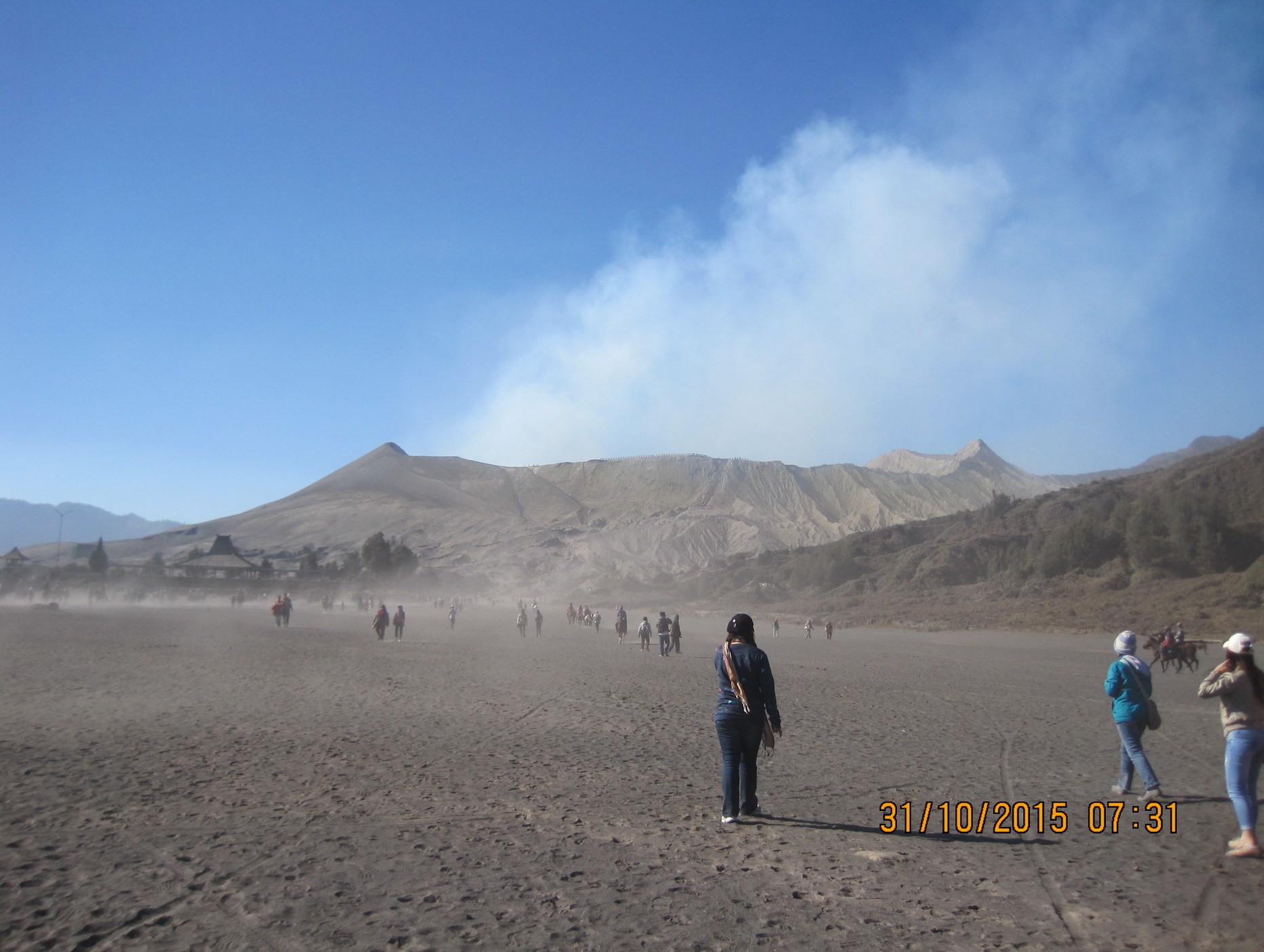 จากนั้นก็ไปปีนปากปล่องโบรโม่กันต่อยาวๆไปต่อด้วยทุ่งหญ้าสะวันน่า ซึ่งหน้านี้แห้งแล้งมากด้วยฝนทิ้งช่วงไปกว่า6เดือนแล้ว ต่อด้วยทะเลทรายรอบๆโบรโม่