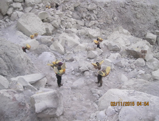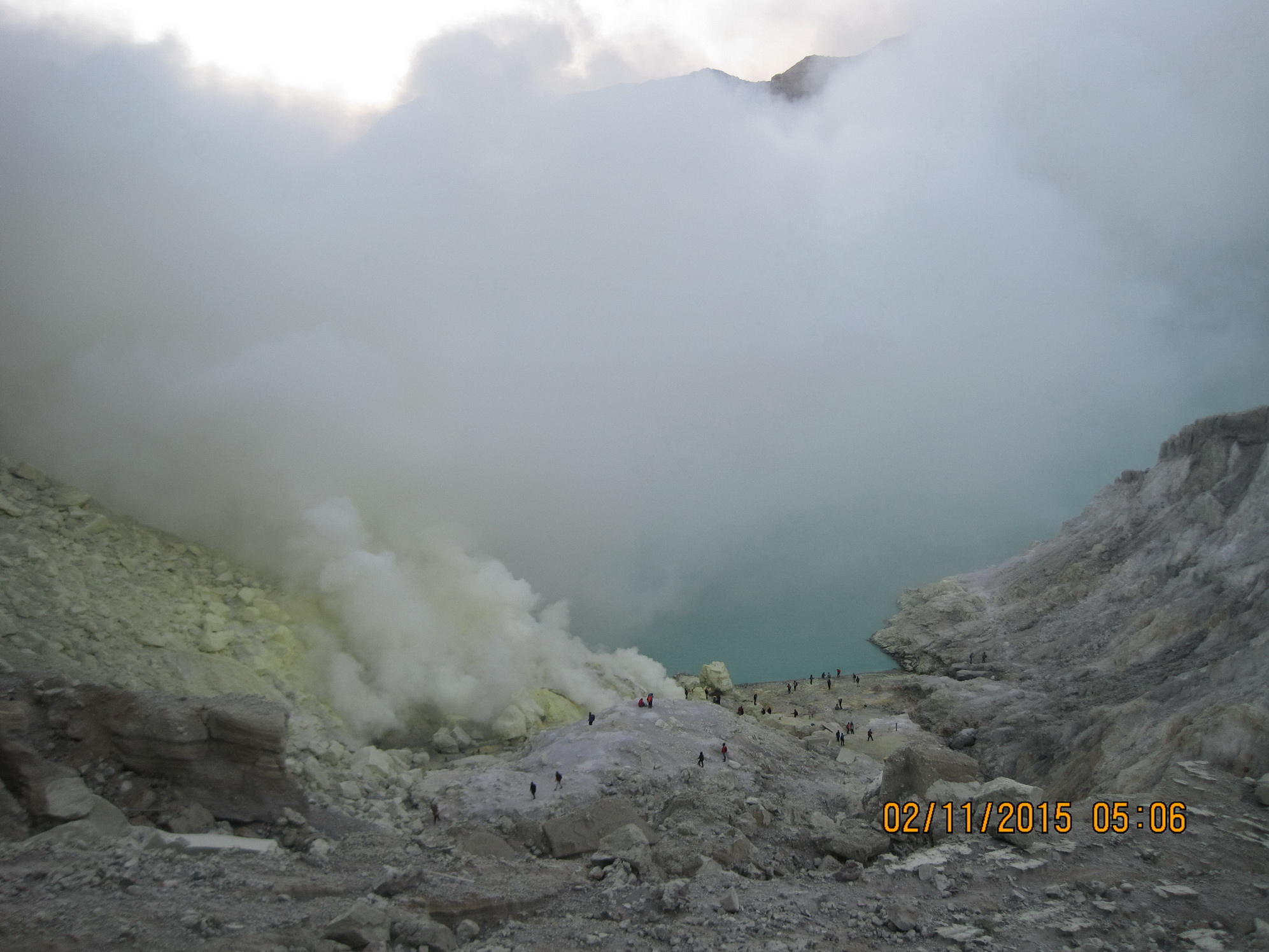 ทางเดินลงไปดูบลูไฟร์ค่อนข้างลำบากมากๆเราไม่ได้ลงไปใกล้และก็ใกล้สว่างแล้วเห็นบลูไฟร์นิดเดียวเอง พอสว่างก็ไม่เห็นแล้ว แต่เพื่อนในกลุ่มลงไปดูเค้าทำเหมืองกำมะถันเห็นถึงความพยายามและความยากลำบากในการแบกกำมะถันขึ้นมาจากก้นปล่อง (คนงานเหมืองบอกเค้าแบกได้หนักสุด75kg คนงานเค้าตอบเราเป็นภาษาอังกฤษนะค่ะ อายมั้ยละ) แล้วยังต้องเจอกับก๊าซพิษอีก