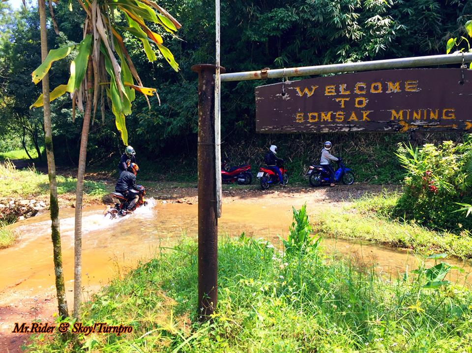 กำหนดการเดิมของเราวันนี้คือจะแวะเล่นน้ำตกจ๊อกกระดิ่น แล้วก็ค่อยๆขี่กลับกรุงเต้บกันค่ะ แต่บอกแล้วว่า ทริปเรามีเรื่องเหนือความคาดหมายเสมอ พอขี่กันลงมาถึงปากทางลงเหมืองสมศักดิ์ ทุกคันจอดลงมาหารือกันว่า อยากลงไปกินเค้กป้าเกล็นกันมั๊ย? หลายคนหลายความคิด บางคนก็ว่าไหนๆมาถึงตรงนี้แล้ว ลงไปลองกันดูซักตั้ง บางคนก็ว่า ทางมันเลวร้ายมากนะ ลงไปมีหวังพังแน่ๆ หัวหน้าทริปของเราไปหาข้อมูลมาจากหมู่บ้านอีต่อง ว่ารถอย่างเราคันเล็กๆ พอลงไหว ฝนก็ไม่ตกที่เหมืองมา 3-4 วันแล้ว มองหน้ากันไปมา สรุปว่าแบ่งออกเป็นสองทีม ทีมที่คิดว่าไม่ไหวก็ไปเล่นน้ำตกจ๊อกกระดิ่นรอก่อน แต่สายโหดอย่างคุณ Rider จะเหลือหรอคะ ลุยอยู่แล้ว ระยะทางตามป้ายคือ 5กิโล ผู้ร่วมทริปของเราคันนึงเคยเอา KSR มาลง เค้าเลยกลายเป็นท่านผู้นำไปในทันที ท่านผู้นำของเราบอกไว้ว่า ถ้าลงไปได้ซัก 2กิโล ก็รู้แล้วว่าที่เหลืออีก 3กิโลจะลงไหวมั๊ย 555 ตามมาดูตอนต่อไปค่ะ ว่าจะยังขำกันออกมั๊ย