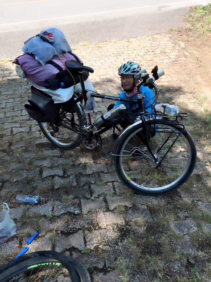 มีน้องผญ.คนหนึ่งปั่นจักรยานขึ้นพระตำหนักดอยตุง เกิดยางรั่วขึ้นมา ได้ลุงคนนี้แกปะยางให้ครับ เลยอยากรู้ว่าท่านคือใคร? เห็นว่าเป็นคนนครนายก ปั่นระยะไกลทั่วประเทศมา 2 ทริปแล้ว