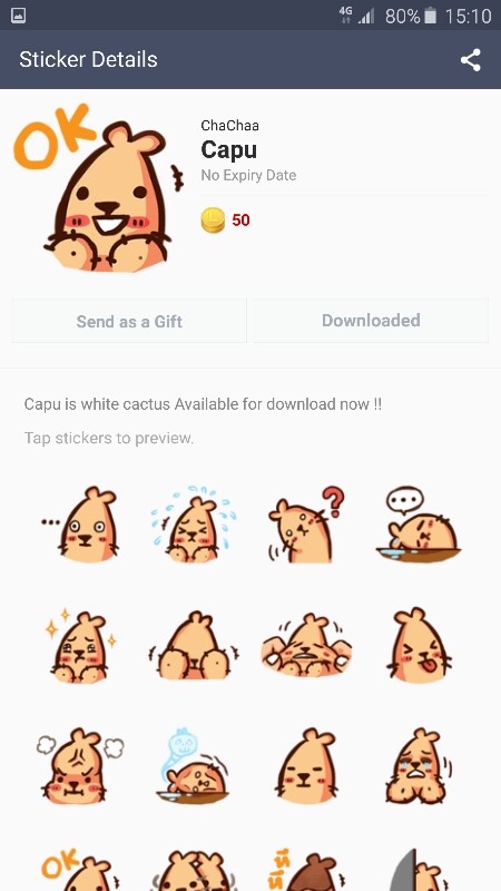 sticker ชื่อ Capu ครับ ผมใช้อยู่ เจ้าของเอาออกจากline ไปตั้งแต่อาทิตย์แรกที่วางขายเพราะโดนต่อว่าจากหลายๆคน เรื่องลอกแบบมาจากsticker อื่น