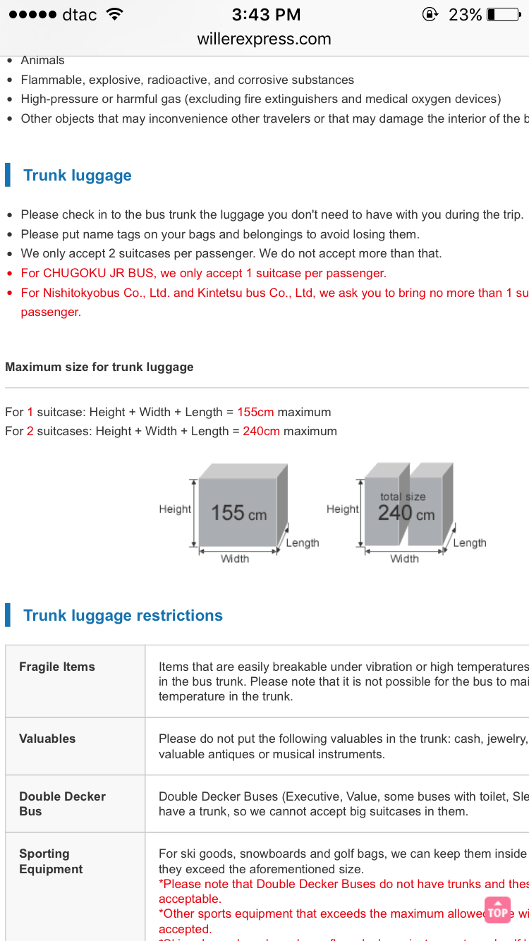 Willere bus จาก ชินจุกุไปโอซาก้า กระเป๋าขนาด 28 นิ้วเอาลงใต้ท้องรถได้มั้ยคะ?