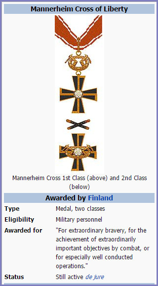 และ Törni ยังได้รับรางวัลเหรียญกล้าหาญสูงสุด