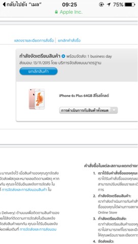สั่ง iphone6s ของ apple store วันส่งมอบวันที่ 25 พ.ย. 58 ตอนนี้เป็นสถานะ กำลังจัดเตรียมสินค้า แปลกใหมครับ