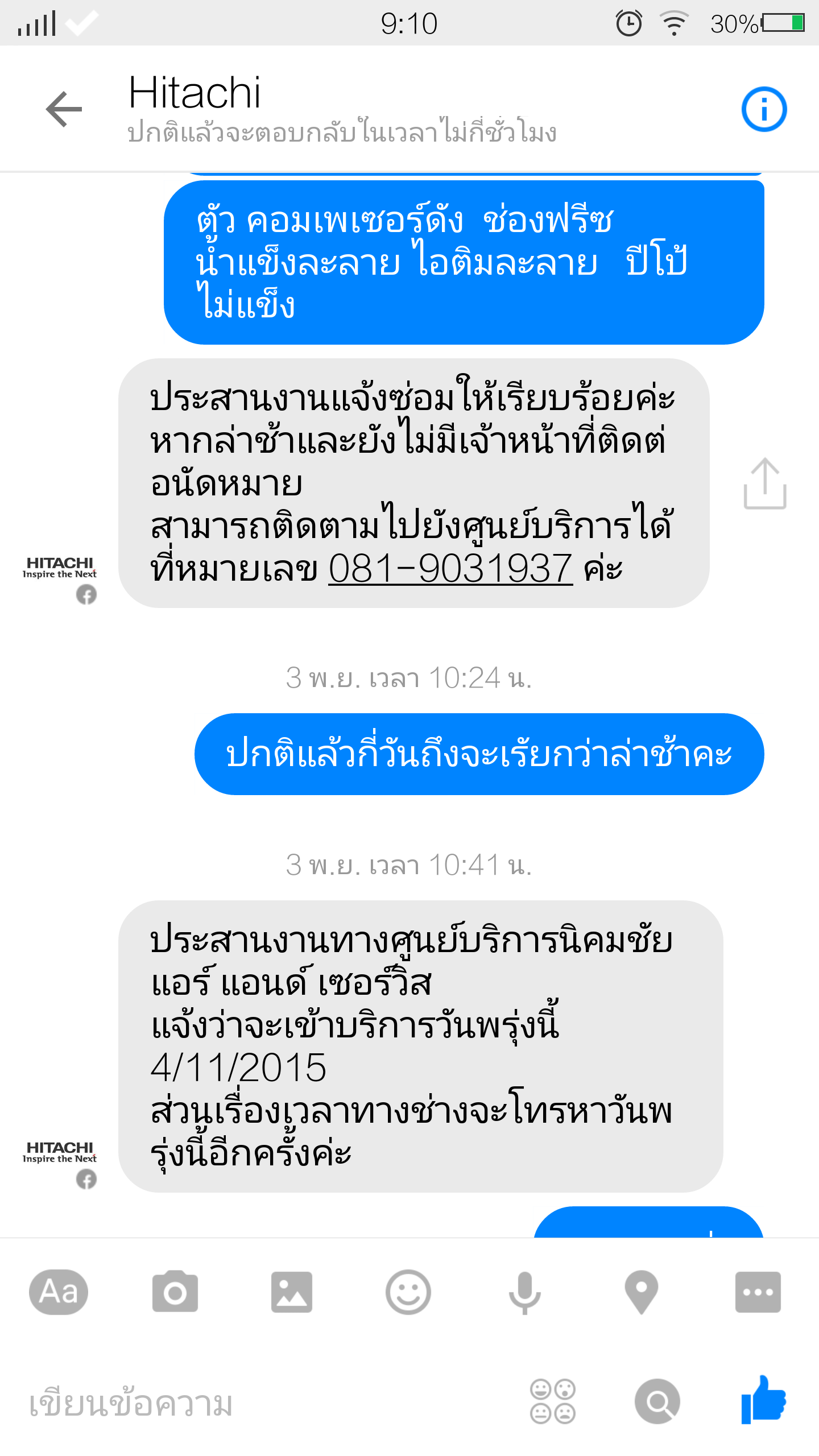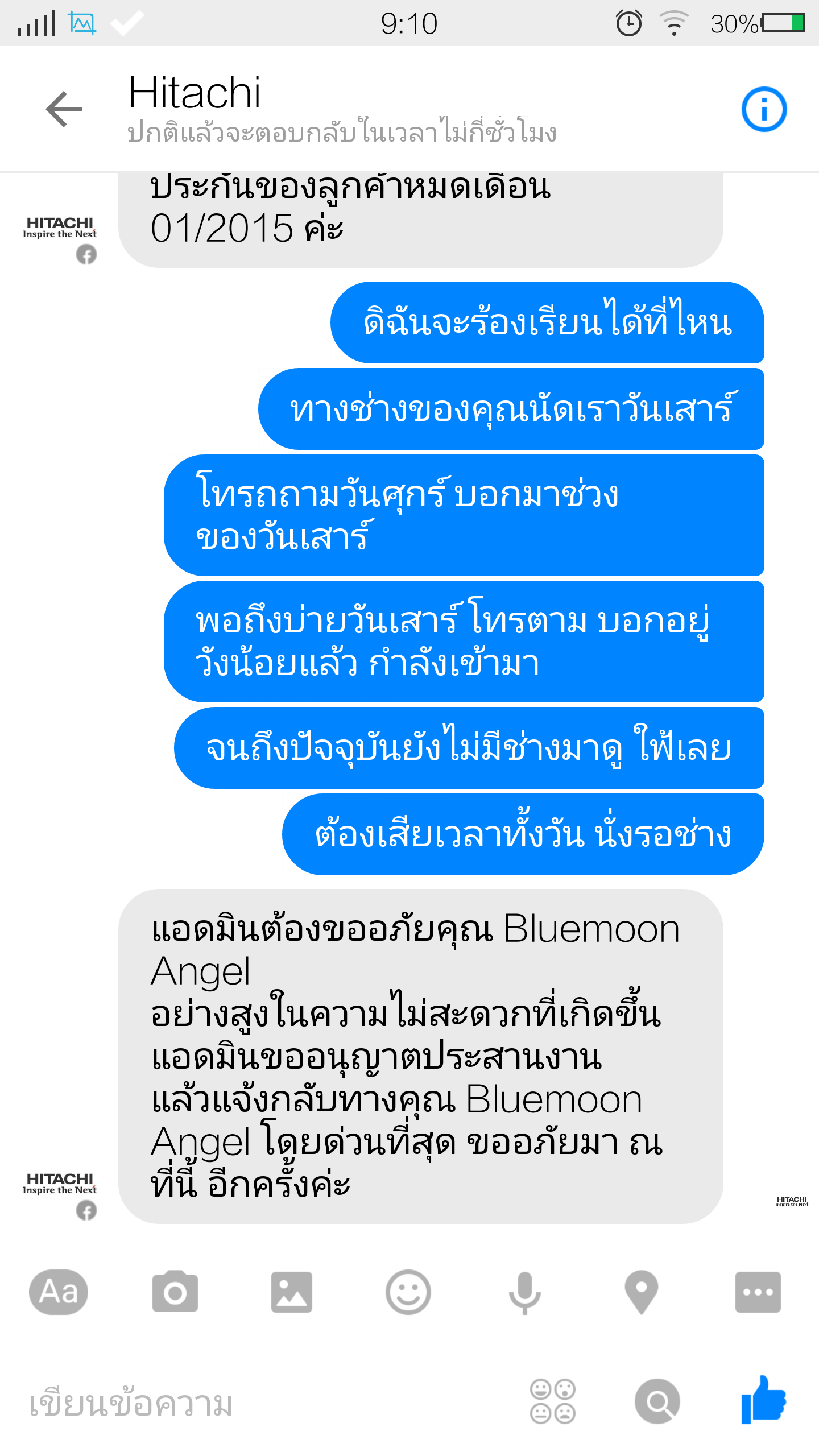 เช้าวันจันทร์ แจ้งหน้า FB hitachi ไป
