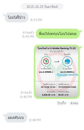 25 ต.ค. ผมรีบออกไปโอนเงินให้เขาก่อนพร้อมส่งหลักฐานให้ [Spoil] คลิกเพื่อดูข้อความที่ซ่อนไว้