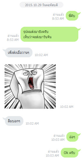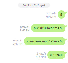 03 พ.ย. ผมถามไปอีก เขาบอกจะส่ง EMS ไปให้เลย [Spoil] คลิกเพื่อดูข้อความที่ซ่อนไว้