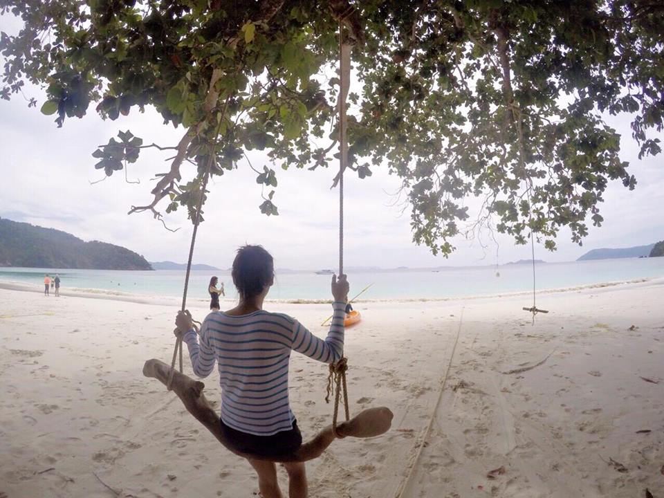 มีชิงช้านั่งเล่นได้ แข็งแรง ชิลสุดๆ นั่งมองหาดขาวๆ น้ำใสๆ ฟังเสียงคลื่น
