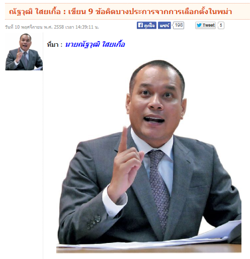 ณัฐวุฒิ ใสยเกื้อ : เขียน 9 ข้อคิดบางประการจากการเลือกตั้งในพม่า / กระทู้คนกลางไร้สีไร้กลิ่น