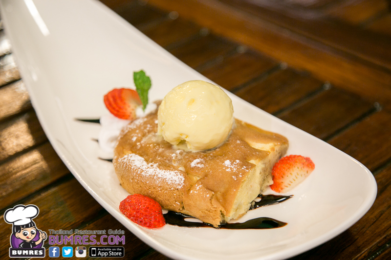 เป็นเมนูที่น่าจะเคยกินแต่ที่ไหนจำไม่ได้แล้วจะเป็นเค้กเนื้อนุ่มคล้ายชิฟฟ่อน หรือขนมเค้กไข่อะไรประมาณนั้น แล้วมีเนื้อแอ็ปเปิ้ลผัดกับน้ำตาลใส่อยู่ด้านในจำนวนมาก เนื้อจะนุ่มมากแล้วแอปเปิ้ลด้านในที่ผ่านการอบมาก็อ่อนตัวเข้ากับแป้งเค้กได้เป็นอย่างดี แล้วยิ่งกินคู่กับไอศกรีมก็ช่วยเพิ่มความอร่อยและน่าสนใจกับเมนูคลาสสิคจานนี้ได้มากเลยครับ