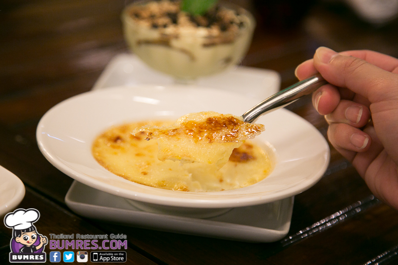 เมนูนี้ถ้าตามที่เราเคยได้ยินกันก็เรียกว่า ครีมบลูเร่ นั่นเอง แต่ที่นี่เค้าเรียกแบบนี้กันครับ ซึ่งเนื้อสัมผัสจริง ๆ ก็เหมือนกับที่เรารู้ ๆ ครับ หอมคัสตาร์ดและวานิลลา มีกลิ่นอบเชยนิด ๆ ผิวหน้ากรอบด้วยน้ำตาลไหม้ และได้กลิ่นหอมสดชื่นด้วยเปลือกส้มขูดฝอย รสชาติอร่อยแบบไม่ต้องบรรยายครับ