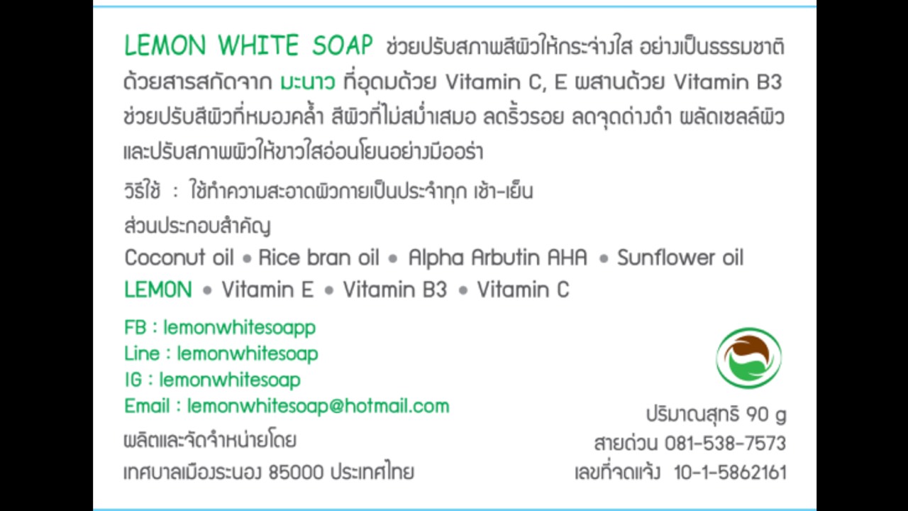 สบู่มะนาวออร์แกนิก Lemon white soap ลดสิว ผิวแพ้ง่าย ติดสเตียร์รอย บำรุงขาวใส ก้อนละ 80