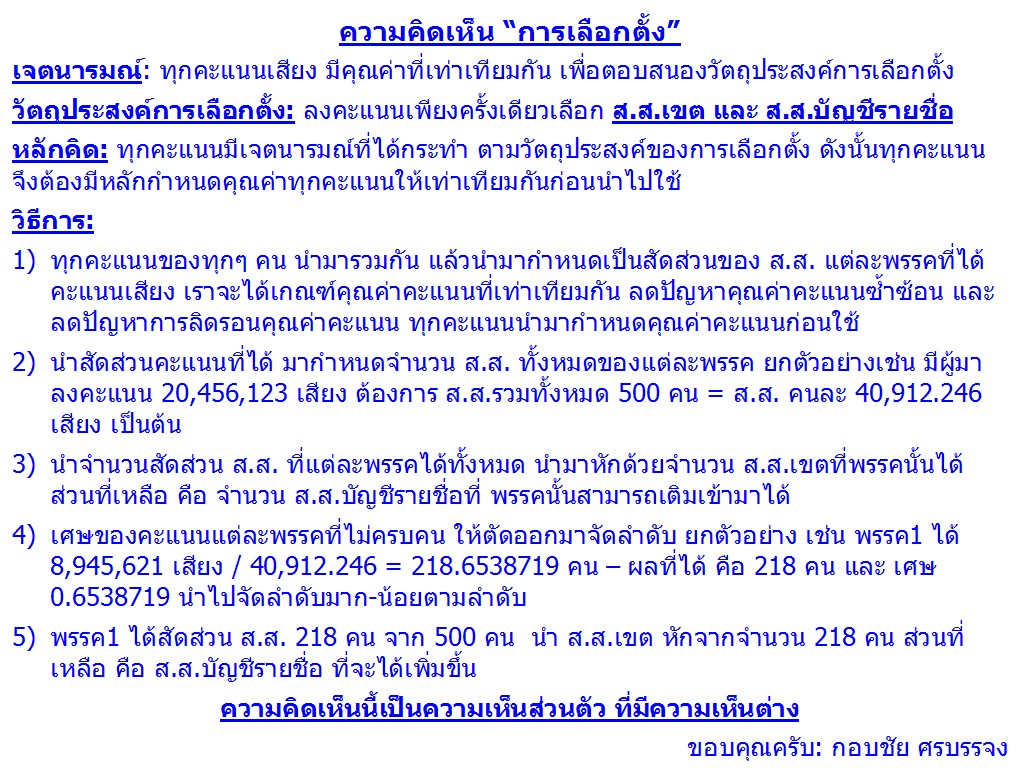 ขอแสดงความคิดเห็น การเลือกตั้ง