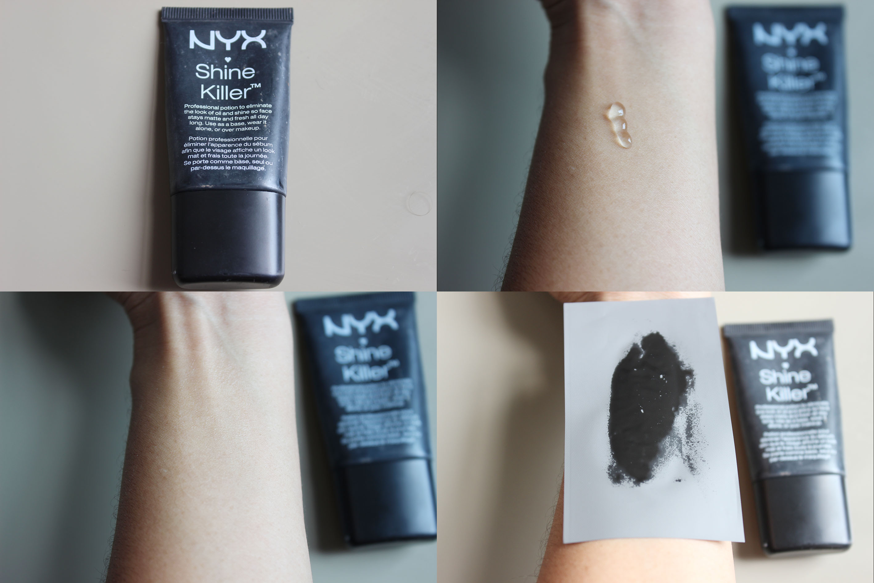 5 ตัวสุดท้าย NYX shine killer สำหรับตัวนี้ เป็นซิลิโคนเนื้อใสแจ๋ว เนื้อสัมผัสจะเบากว่าซิลิโคนเนื้อขุ่นสองตัวข้างต้น ทาลงบนผิวแล้วลื่นปรี๊ดยิ่งว่า ทำให้ลงรองพื้นง่าย แต่ข้อควรระวังคือ หากแต่งหน้าในสภาพร้อนจัด ทุกอย่างมีสิทธิ์ไหลลงมากองรวมกันได้ง่ายกว่าที่เคย ทดสอบความมันคือเยอะเอาเรื่องอยู่