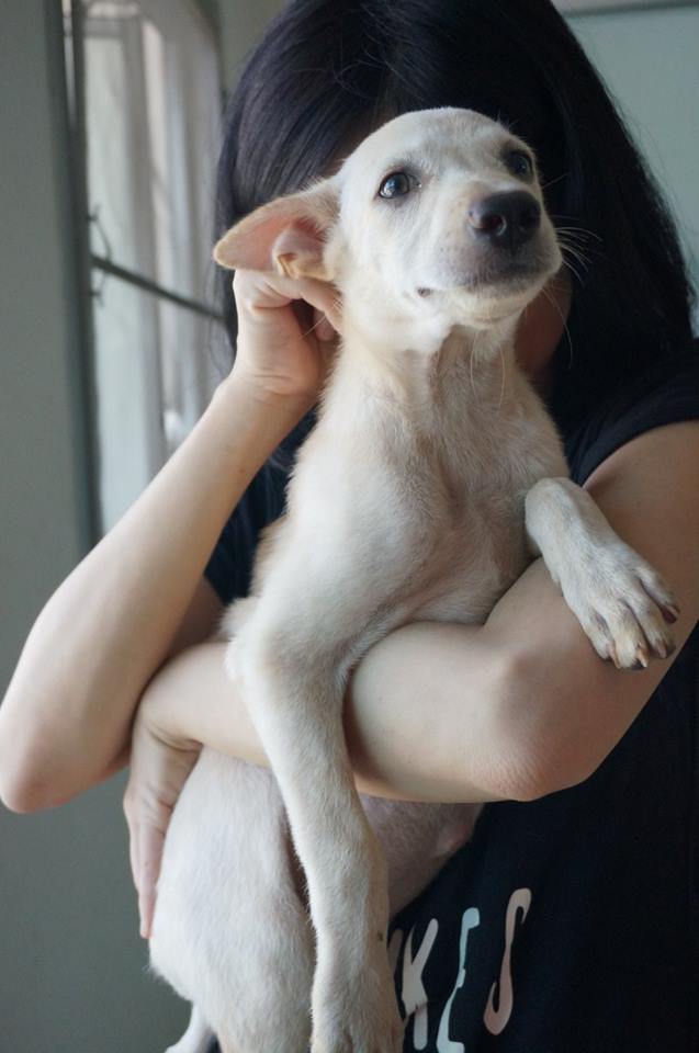 เหมยหลิง ขนเกรียน สีครีม ประมาณ 3 เดือนเศษ เพศเมีย เป็นพันธุ์ผสมไซส์เล็กโตมาไม่เกิน 10 กิโล วัคซีนรวมแล้ว 1 เข็ม ฝากดูแลอยู่ รพส.