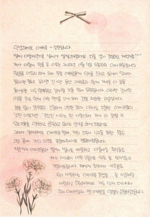 2. [+6,910, -208] เธอเทรนมา 4 ปีและสุดท้ายก็ได้เดบิวต์กับ April แต่ตอนนี้เธอสมัครใจออกเอง? แถมยังเขียนจดหมายแบบนี้ด้วย? มีบางอย่างน่าสงสัย...