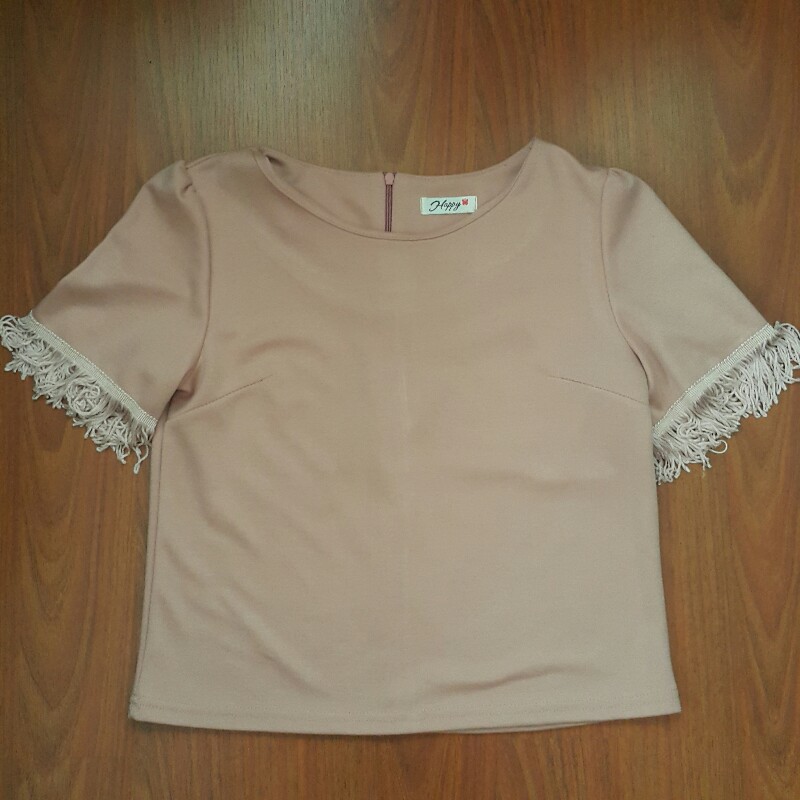 3.เสื้อสีชมพูอ่อน ชายแขนแต่งพู่ ผ้าหนาทรงสวย