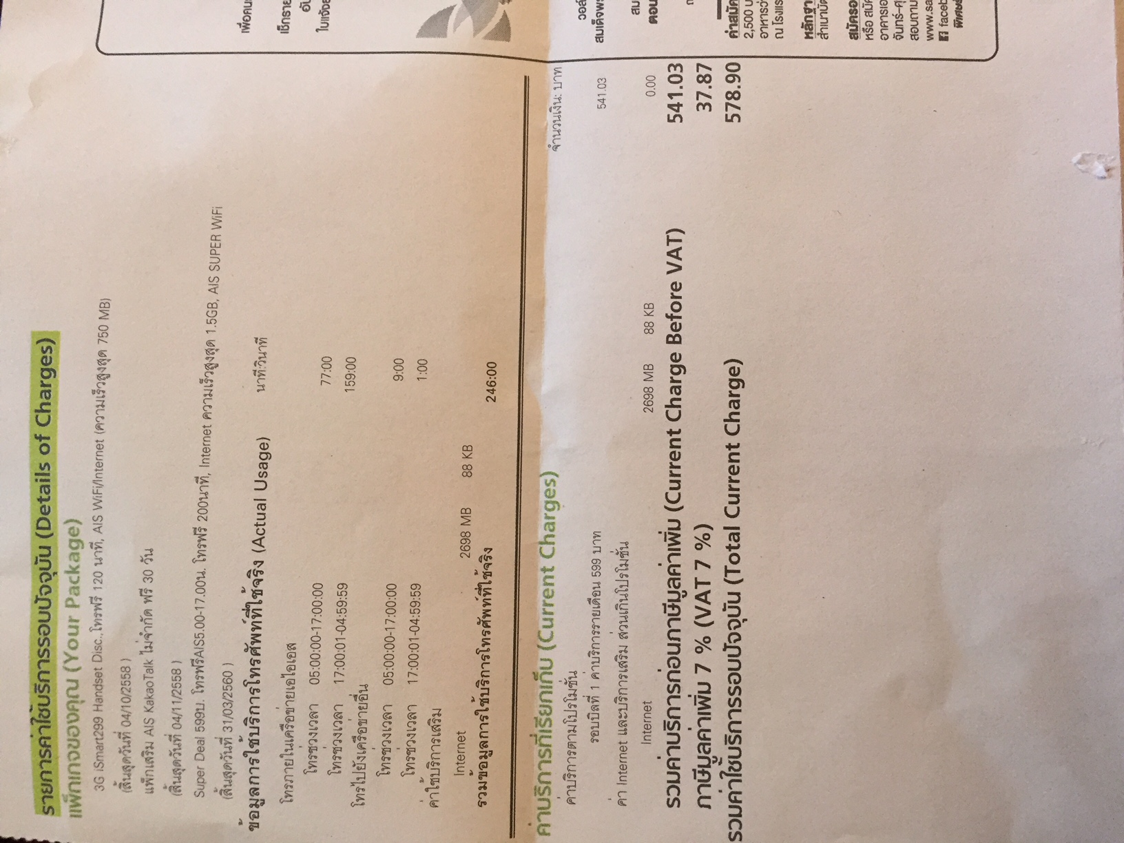 งง!!! กับบิลแจ้งค่าใช้บริการของ AIS กรณีเหมาจ่ายล่วงหน้ามากเลยค่ะ