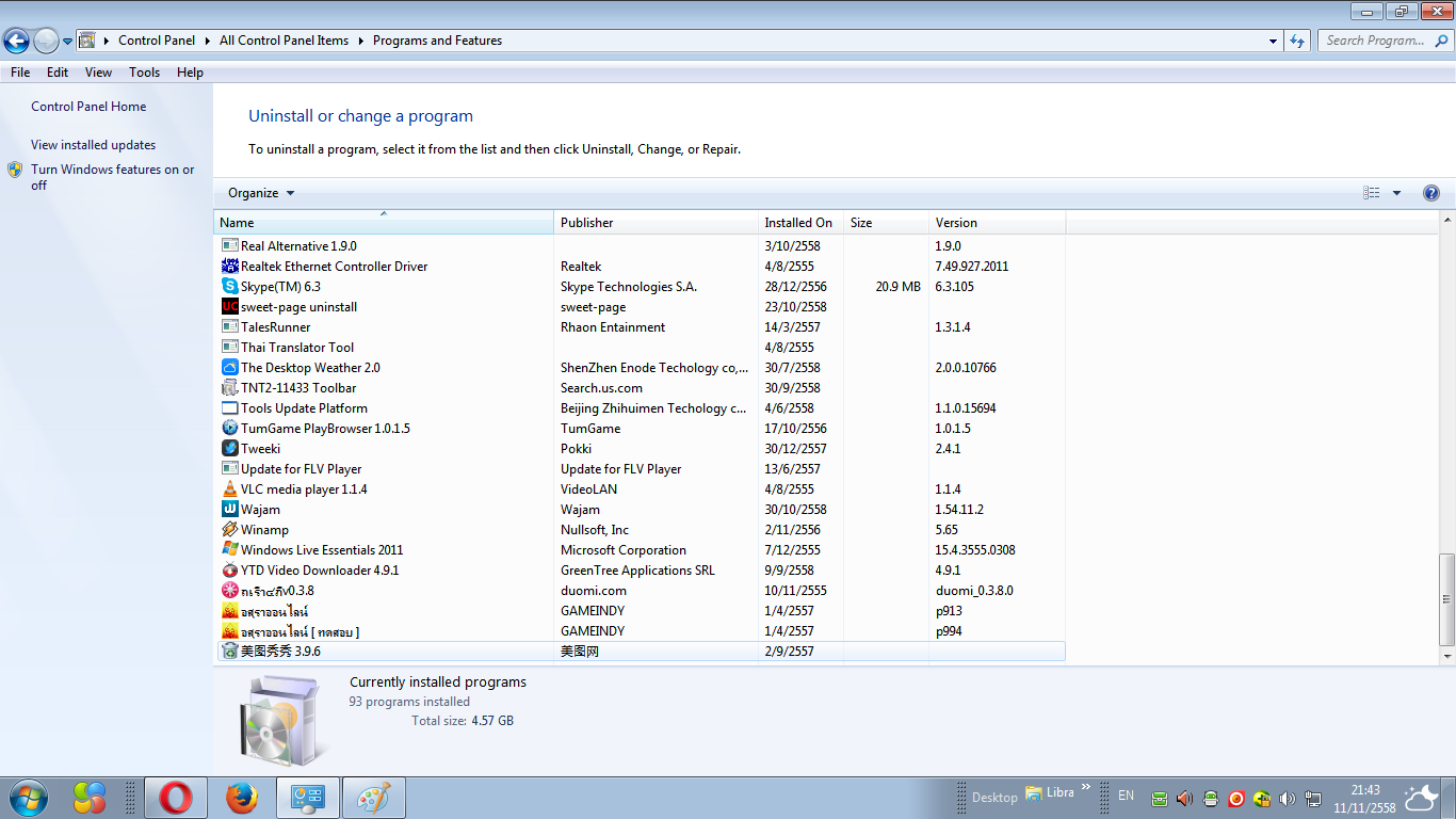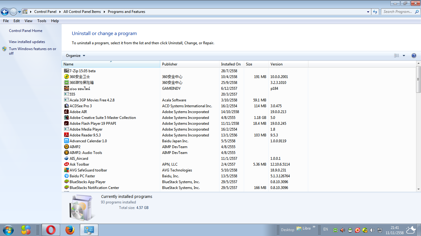นี่คือพวกโปรแกรมทั้งหมดในเครื่อง ไอ 360 นี่พยายามลบหลายรอบแล้วแต่มันเป็นภาษาจีนอ่านไม่ออก ไม่รู้ว่าตรงไหนมันแปลว่า Uninstall