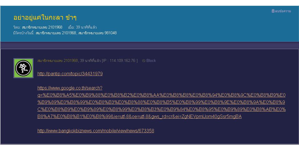 จากกระทู้ http://pantip.com/topic/34431979 : ถึงสมาชิกหมายเลข 2101968 หลังไมค์มาต้องการไรหรอครับ