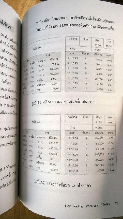 เนื้อหานี้น่าสนใจครับ การซื้อหรือขายครั้งละ 100หุ้น(หรือการ Mark Position) หนังสือเล่มนี้เขียนจากมุมมองที่สามารถให้ความกระจ่างแก่มือใหม่ได้ทุกยุคทุกสมัยครับ ก็จะเป็นการอธิบายเกี่ยวกับลำดับออเดอร์ของรายใหญ่อย่างละเอียด