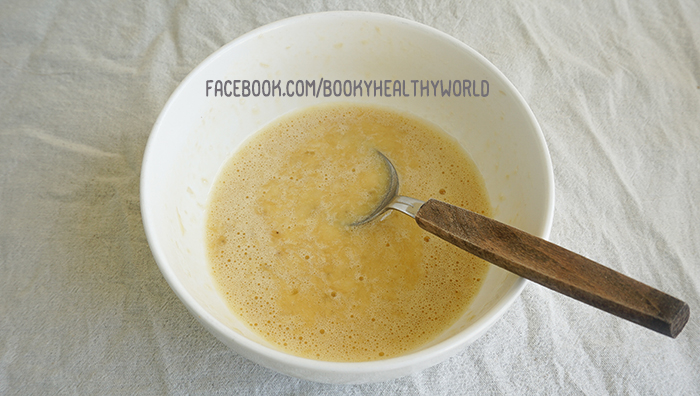 1.นำกล้วยหอมสุกมาบดให้ละเอียด