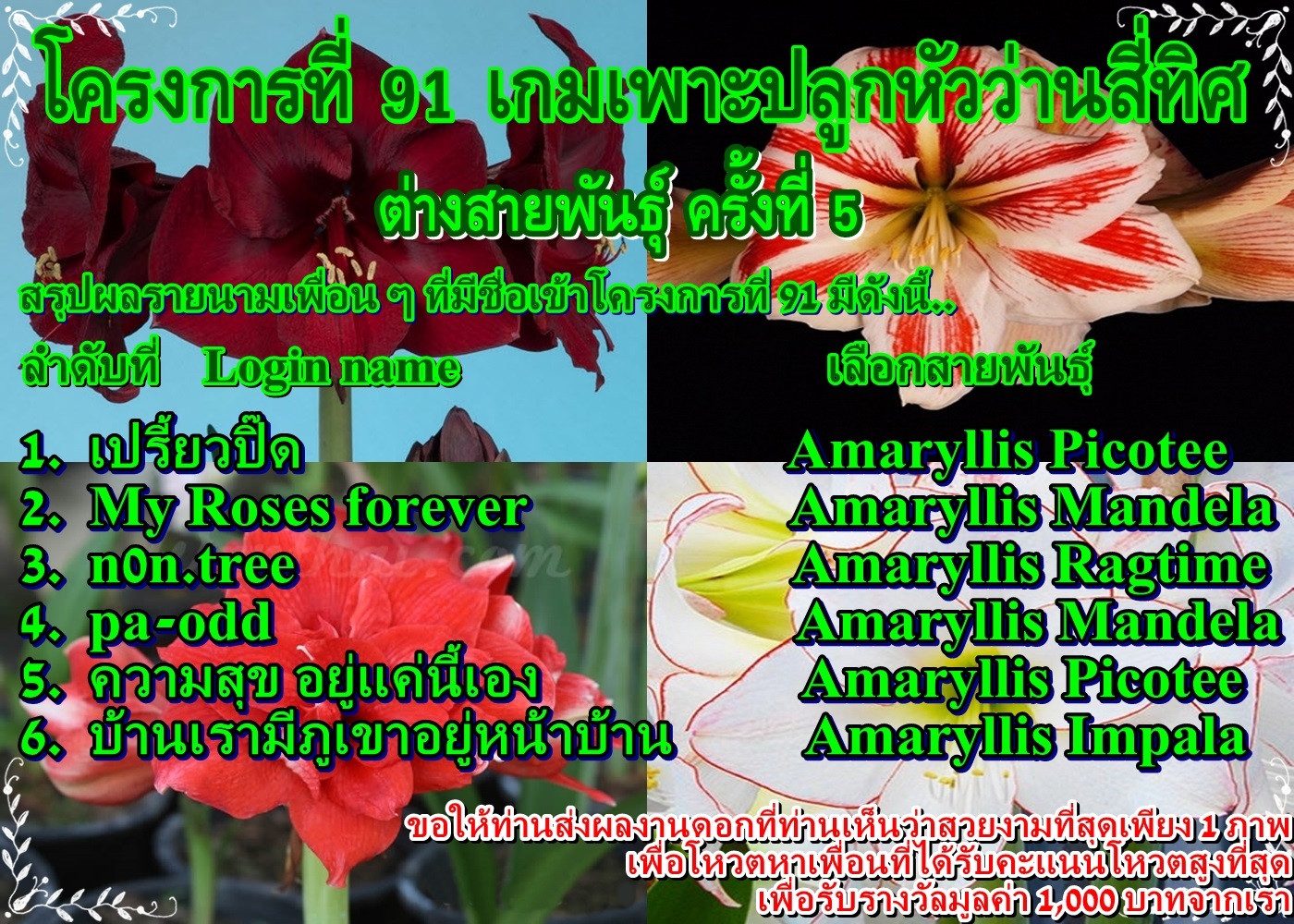 !!!!!!!! รอบชิงฯ โครงการที่ 91 เกมเพาะปลูกหัวว่านสี่ทิศ ต่างสายพันธุ์ครั้งที่ 5 !!!!!!!!