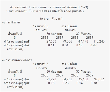 งบไตรมาส 3 ที่ประกาศ(ประกาศวันที่12/11/2558)
