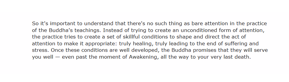 there's no such thing as bare attention in the practice of the Buddha's teachings
