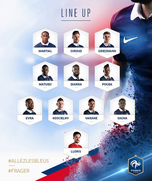 Matuidi, Diarra, Pogba – Martial, Giroud, Griezman