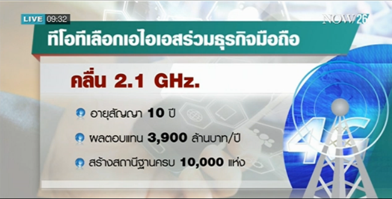 นายมนต์ชัย หนูสง รักษา การกรรมการผู้จัดการใหญ่ บริษัท ทีโอที กล่าวว่า ที่ประชุมกรรม การบริษัทได้เห็นชอบในเรื่อง พันธมิตรธุรกิจโทรศัพท์เคลื่อน ที่บนคลื่น 2100 เมกะเฮิรตซ์ ที่มีอยู่ 15 เมกะเฮิรตซ์ กับ บมจ.แอดวานซ์ อินโฟร์ เซอร์วิส เป็นการทำสัญญาร่วมกัน 10 ปี เป็นการหาพันธมิตรร่วมดำเนินงานตามนโยบายของ คนร. ซึ่งมองว่าบริษัทจะได้ผลตอบแทนในอนาคตดีขึ้น และจะทำให้ตัวเลขทรัพย์สินด้อยค่าที่มีอยู่ลดลงหรือหายไป โดยบริษัทจะพยายามให้รายละเอียดของสัญญาเสร็จสิ้นภายในปีนี้ ซึ่งบริษัทมีสถานีฐานในคลื่น 2100 เมกะเฮิรตซ์ อยู่ 5,320 สถานี และคาดว่าการมีพันธมิตรจะทำให้ต้องเพิ่มสถานีฐาน เพิ่มขึ้นกว่า 10,000 สถานี อย่างไรก็ตาม ขั้นตอนการเขียนร่างสัญญาจะใช้ช่วงเวลา 1 เดือน เพื่อเสนอบอร์ดพิจารณาอีกครั้ง